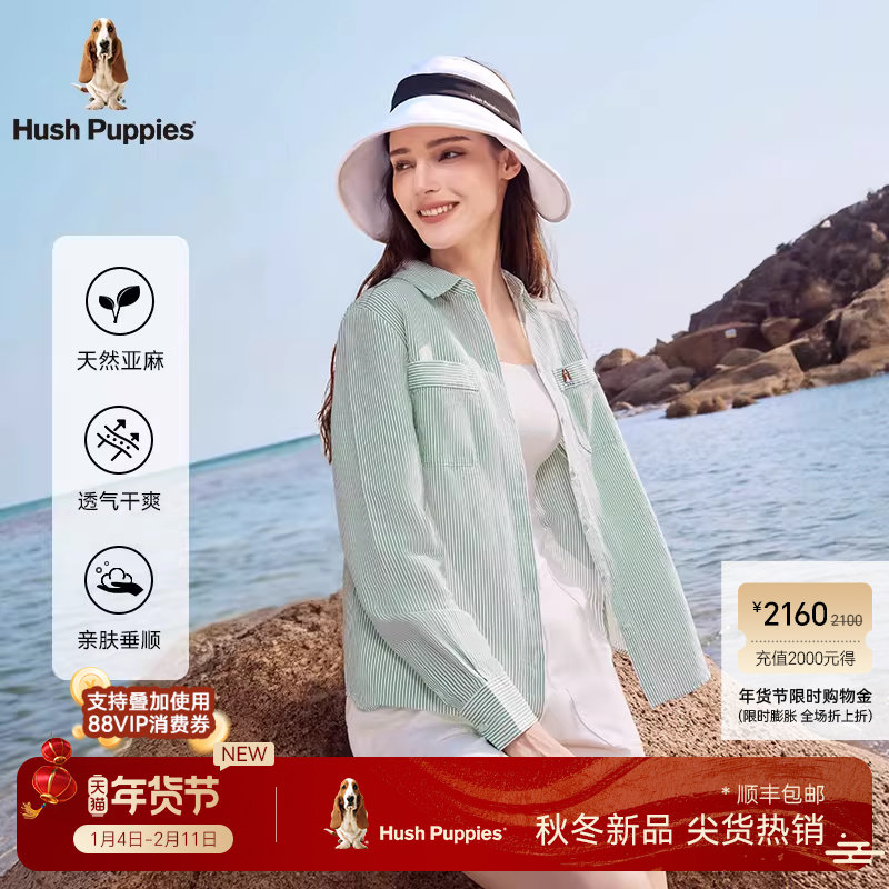 【明星同款】暇步士女装柔软轻盈外套2025秋季竖条纹松弛感衬衫女