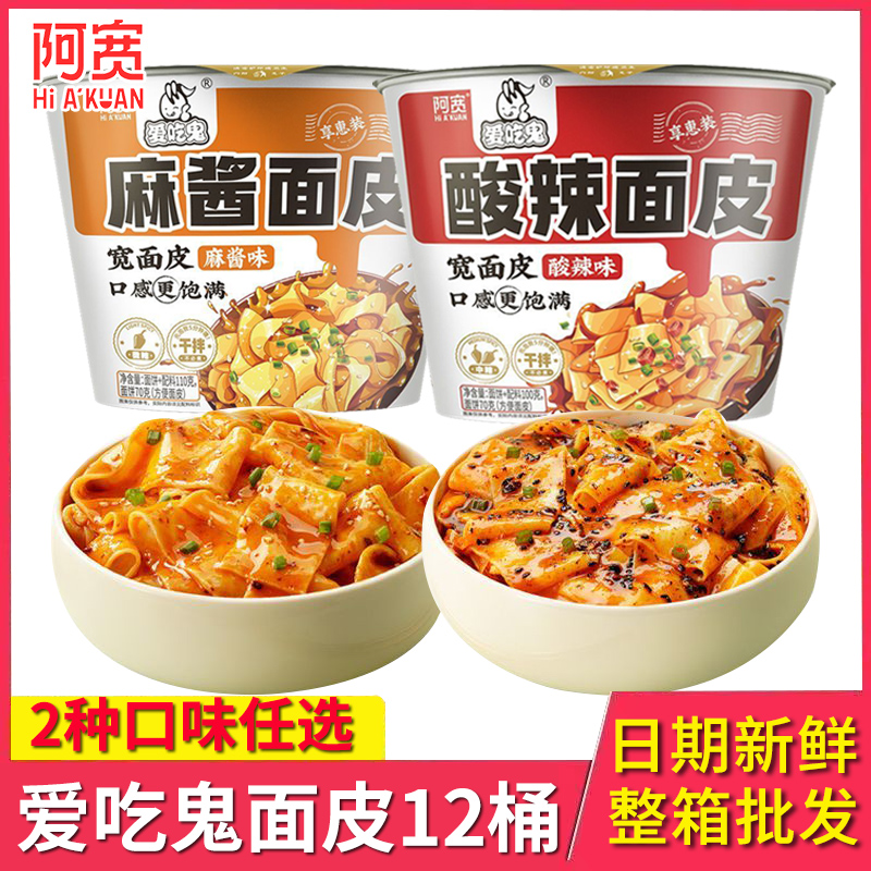 阿宽红油面皮12桶装爱吃鬼酸辣面皮麻酱非油炸速食方便面宿舍夜宵