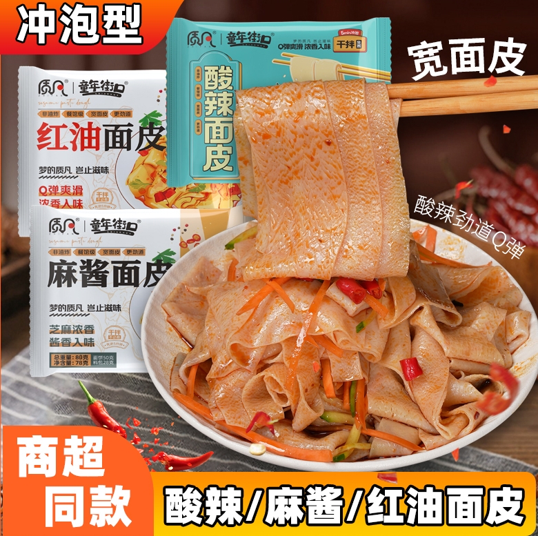 童年街口红油面皮10袋质凡麻酱面皮酸辣面皮多口味混合装方便速食