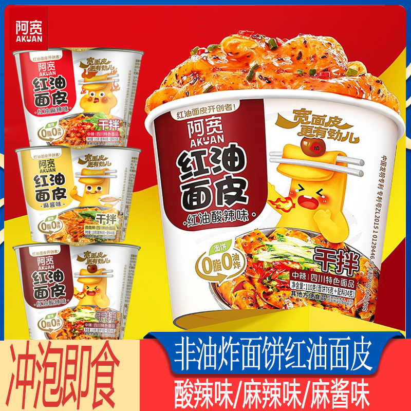 阿宽红油面皮酸辣麻酱糖醋麻辣味速食泡面方便面0脂面饼爱吃鬼版