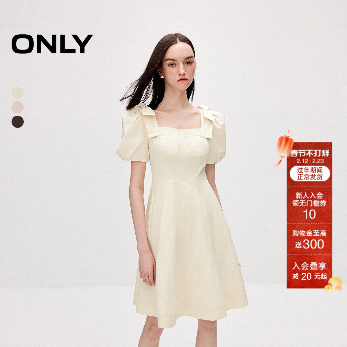 ONLY夏季甜美学院显瘦收腰短裙泡泡袖连衣裙女|124207129