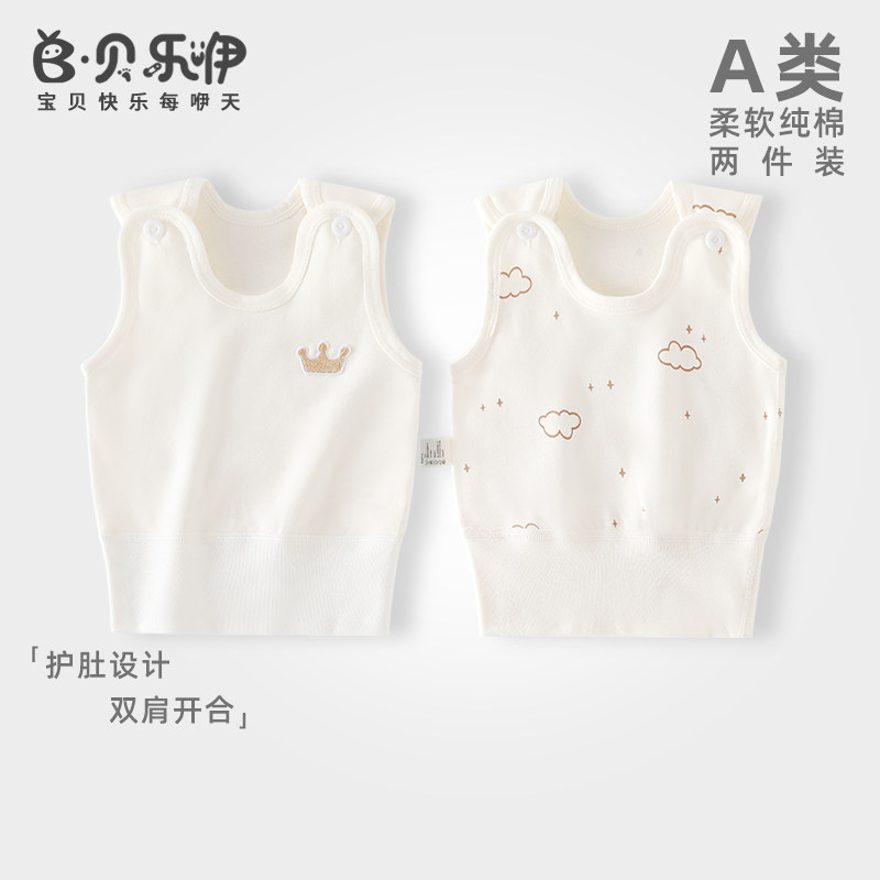 贝乐咿新生婴儿背心纯棉护肚内穿打底无袖上衣男女童宝宝坎肩睡衣