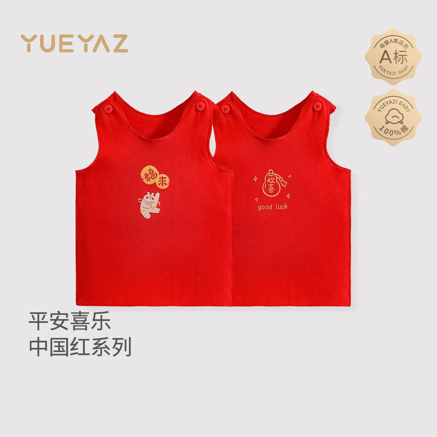 月牙子婴儿背心纯棉a类宝宝吊带春秋新生儿内穿大红色儿童纳福衣
