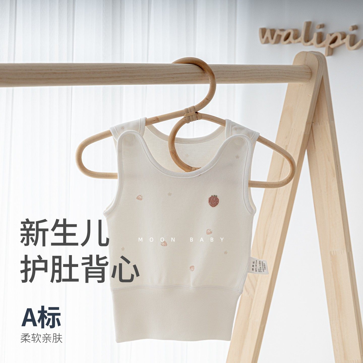 月牙子新生婴儿背心纯棉a类护肚无袖跨栏薄款小月龄宝宝半背肩扣