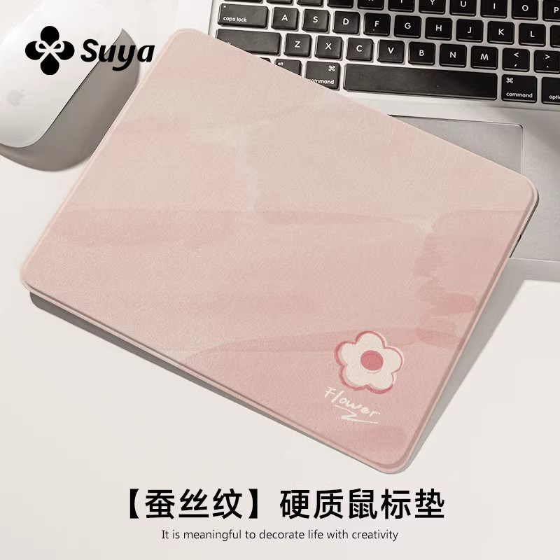 SUYA苏雅粉色小花鼠标垫小号女生办公电脑桌垫硬质便携高级滑鼠垫
