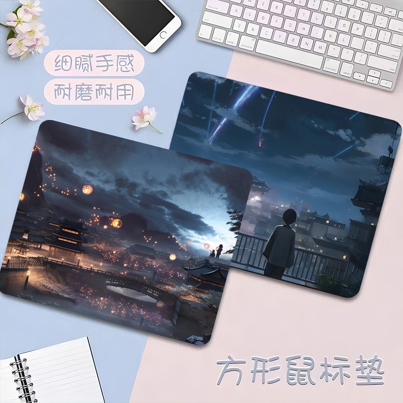 2025新款鼠标垫小号风景动漫游戏电脑键盘桌垫子办公护腕锁边加厚