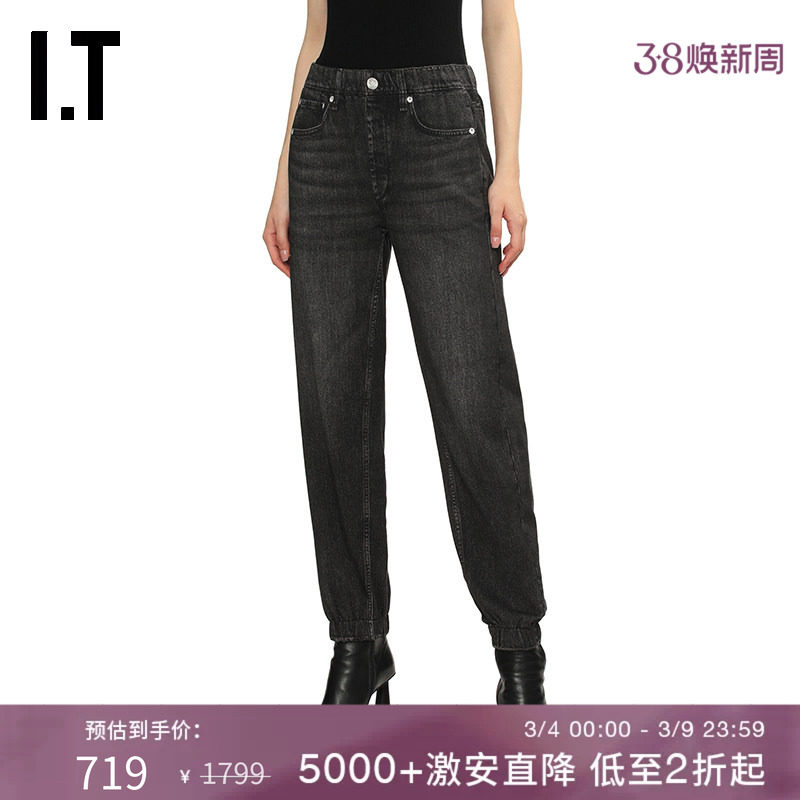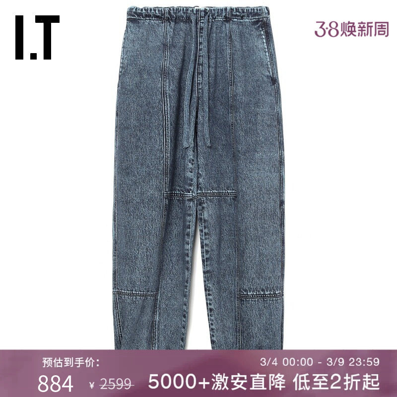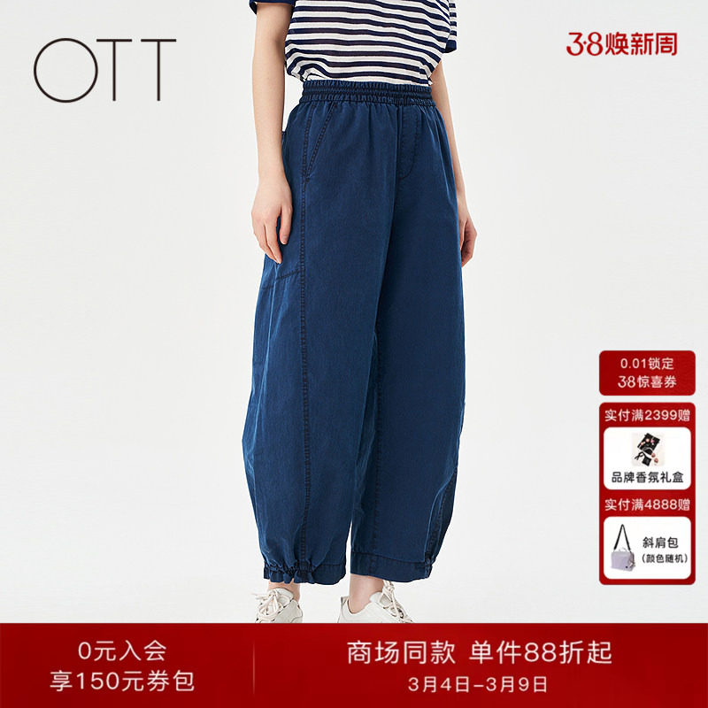 OTT【商场同款】2025夏季新品宽松抽绳束脚牛仔裤女百搭休闲裤子
