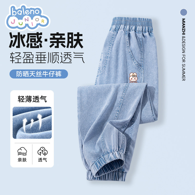 班尼路童装女童裤子夏款2026新款儿童束脚牛仔裤女大童防蚊裤薄P