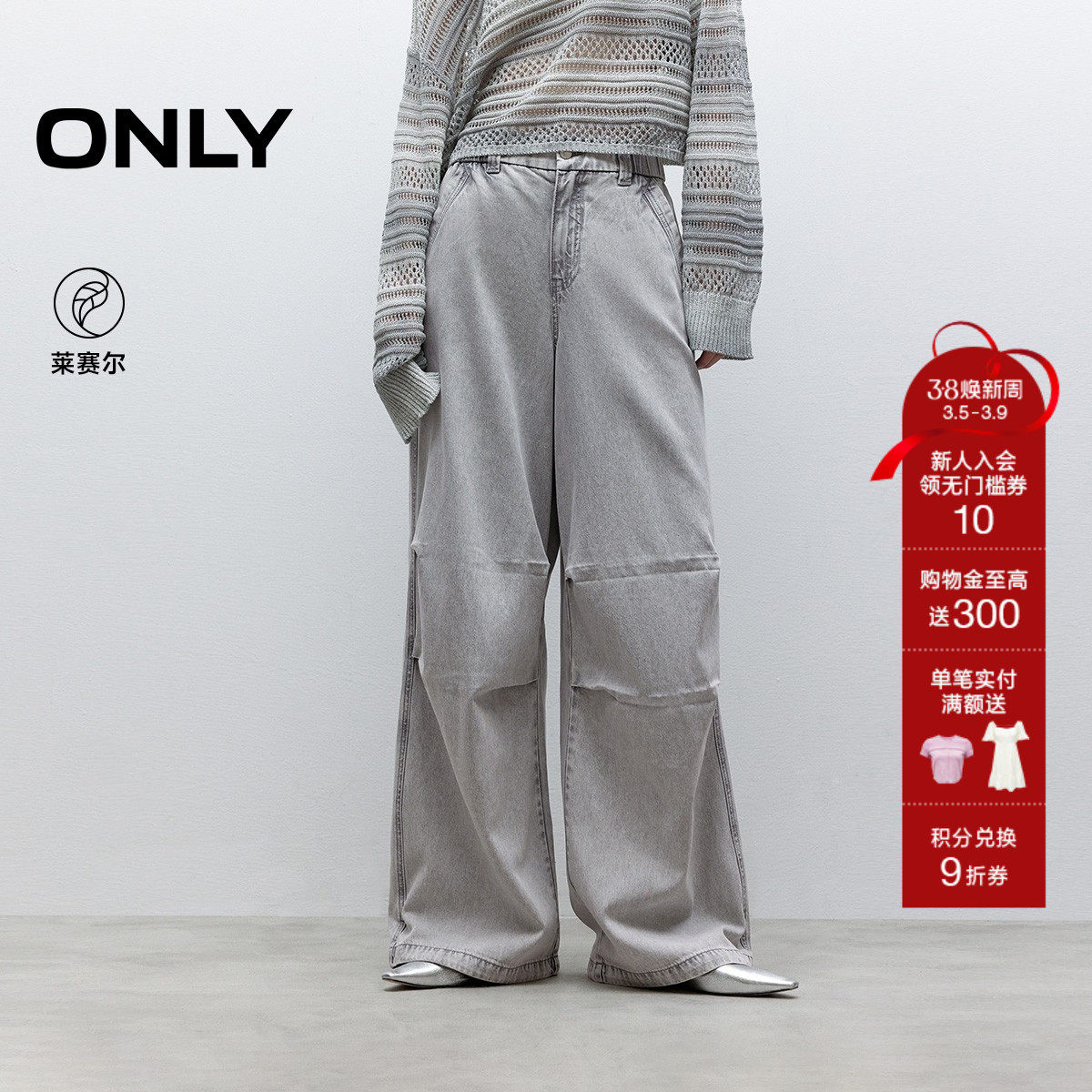 ONLY2026春季新款莱赛尔减龄舒适宽松工装设计感高腰束脚牛仔裤女
