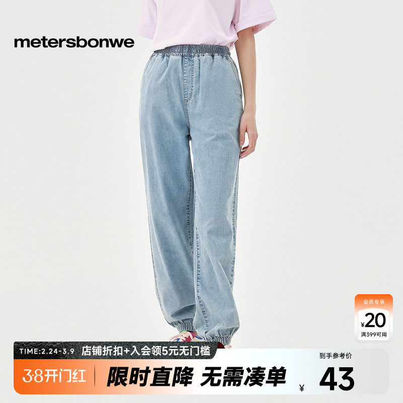 美特斯邦威牛仔长裤女春秋基本轻薄慢跑裤纯色柔软洗水束脚裤子女