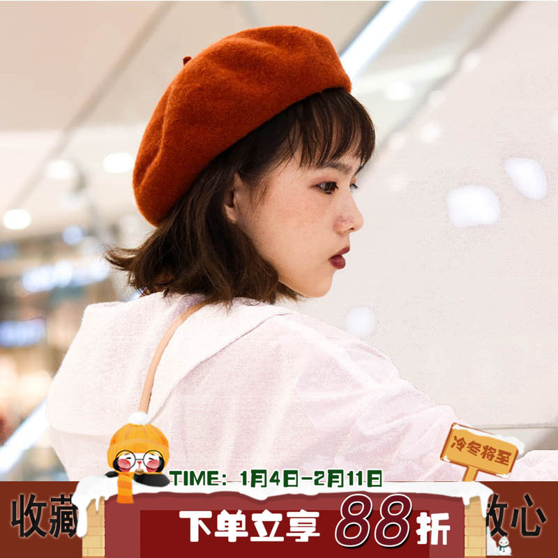 贝雷帽女英伦复古秋冬日系羊毛画家帽女士蓓蕾帽子百搭韩版潮ins