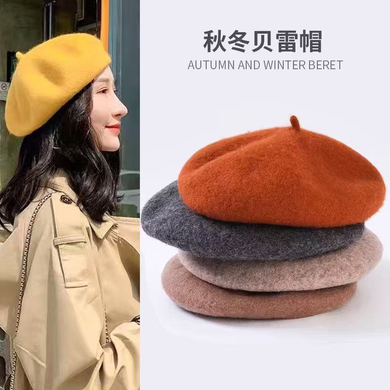 羊毛贝雷帽女秋冬季韩版日系百搭画家帽英伦复古网红毛呢蓓蕾帽潮