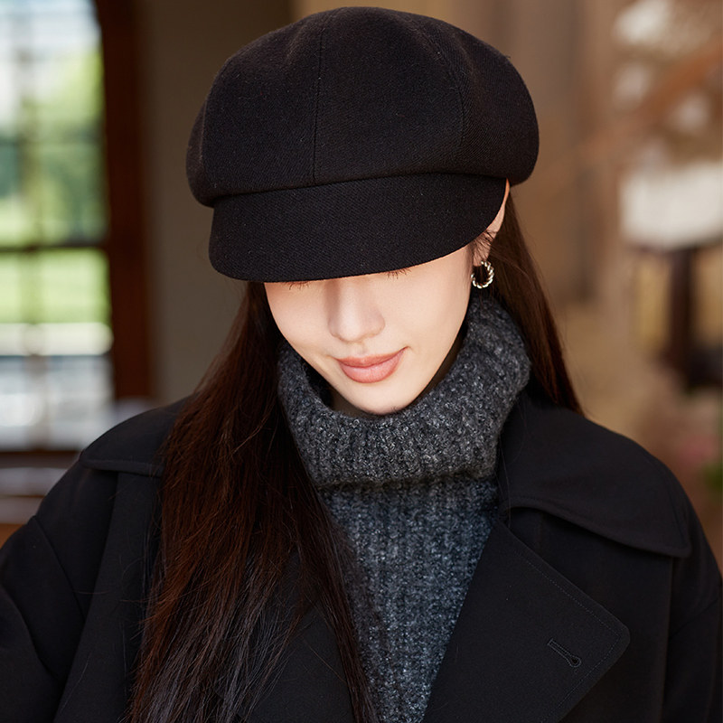 帽子女秋冬天休闲百搭潮日系韩版英伦鸭舌八角帽羊毛呢礼帽贝雷帽