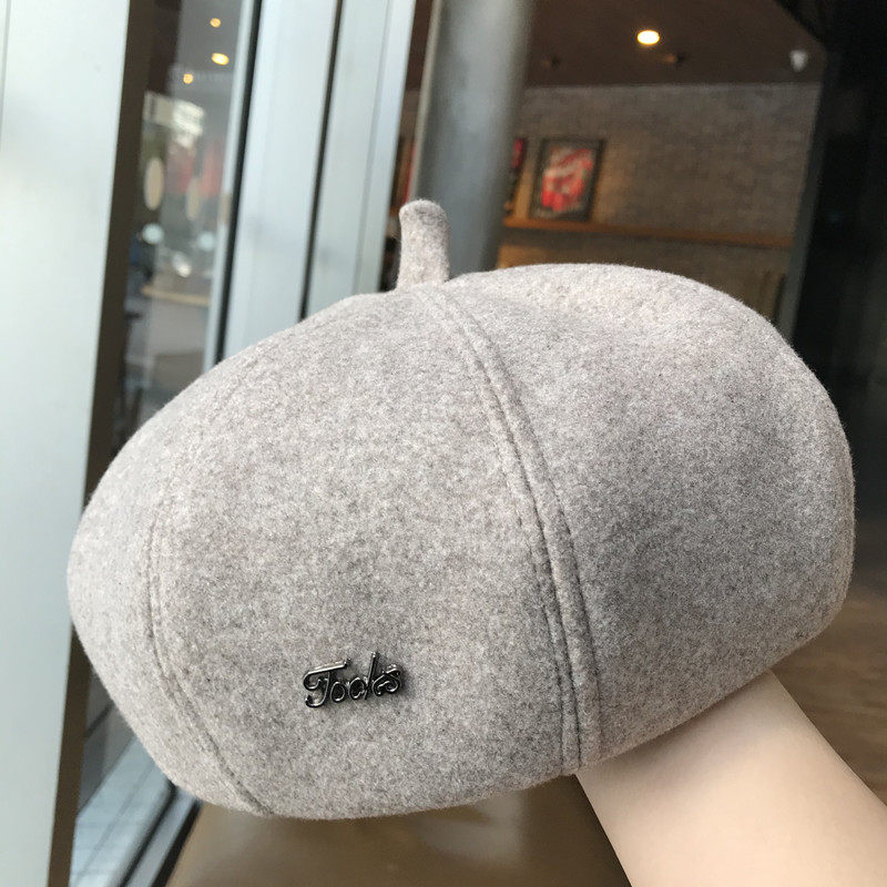 日系羊毛呢贝雷帽女秋冬新款英伦复古画家帽子韩版灰色女款蓓蕾帽