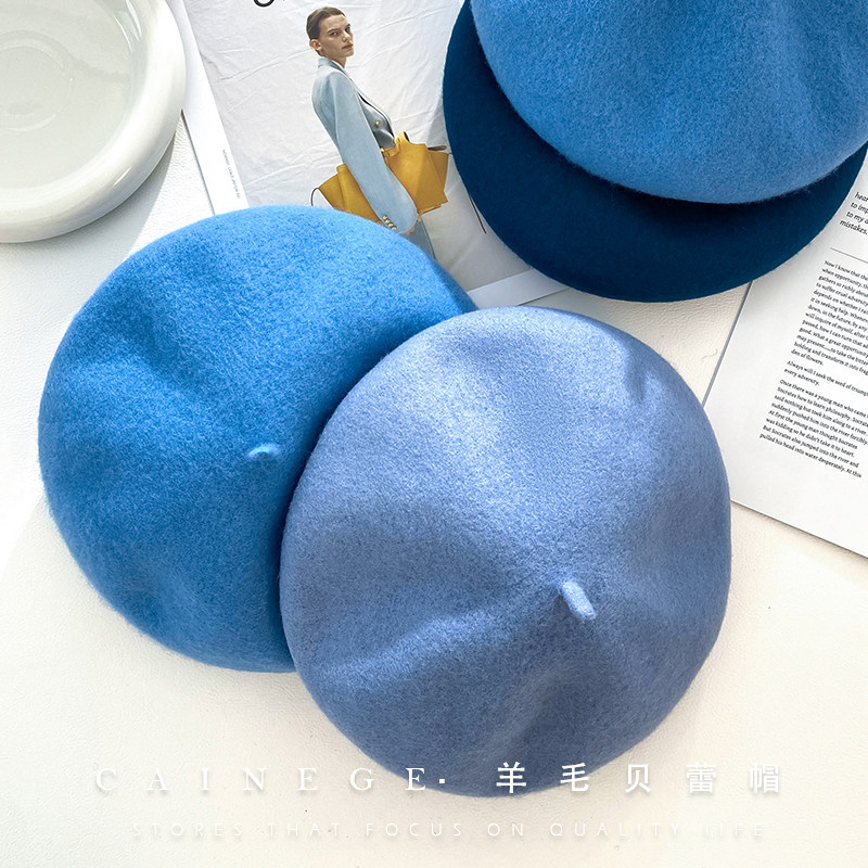 蓝色系多色贝雷帽女秋冬韩版羊毛呢蓓蕾帽日系画家帽子英伦复古风