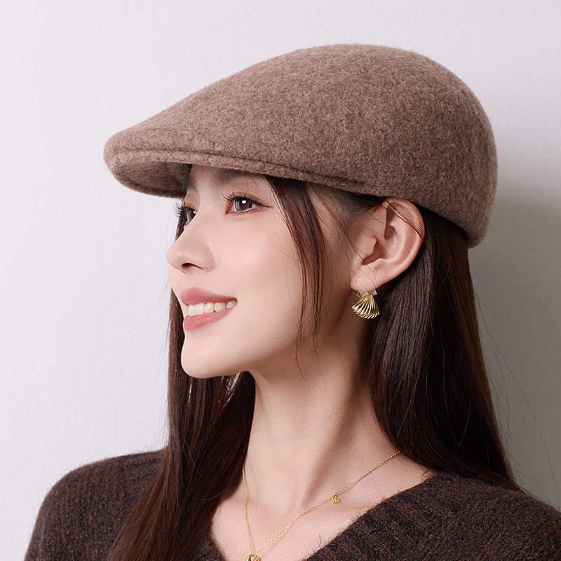 秋冬前进帽女英伦复古羊毛呢鸭舌帽男韩版日系百搭保暖贝雷帽子潮
