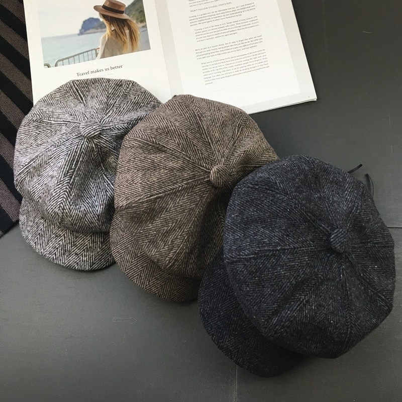 日系复古贝雷帽女韩版ins反戴前进帽秋冬英伦八角帽鸭舌帽子男潮