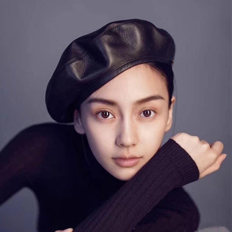 D家真皮贝雷帽女秋冬韩版日系百搭ins网红帽时尚潮英伦文艺画家帽