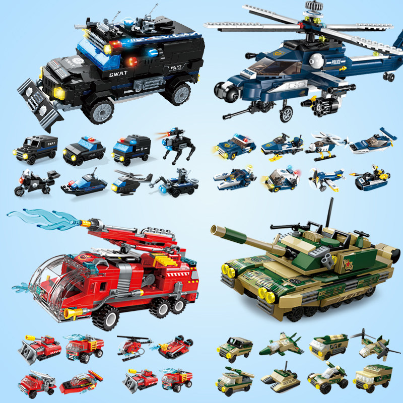 儿童男生积木拼装玩具消防车坦克飞机系列小男孩5岁6以上新年礼物