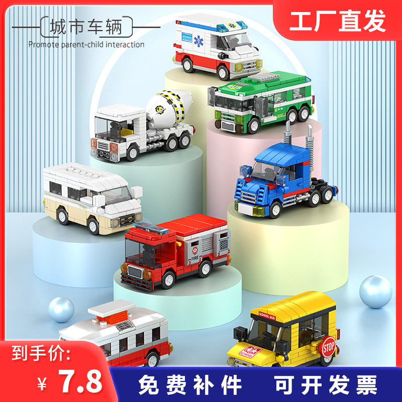 儿童玩具男生积木益智拼装工程车消防车汽车城市车辆礼品颗粒车车