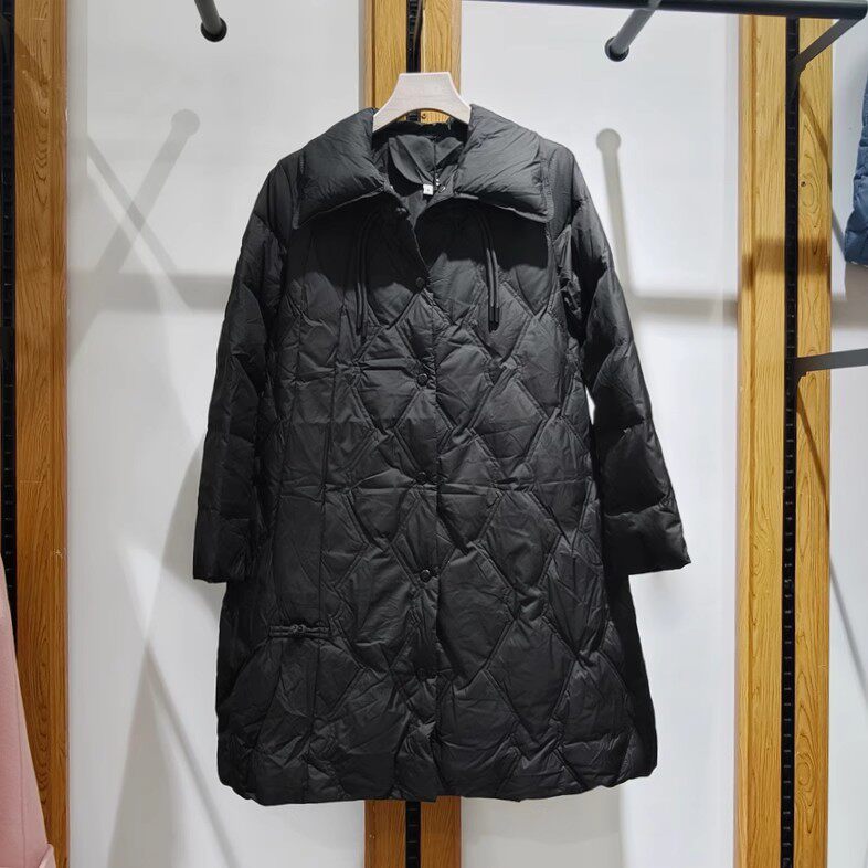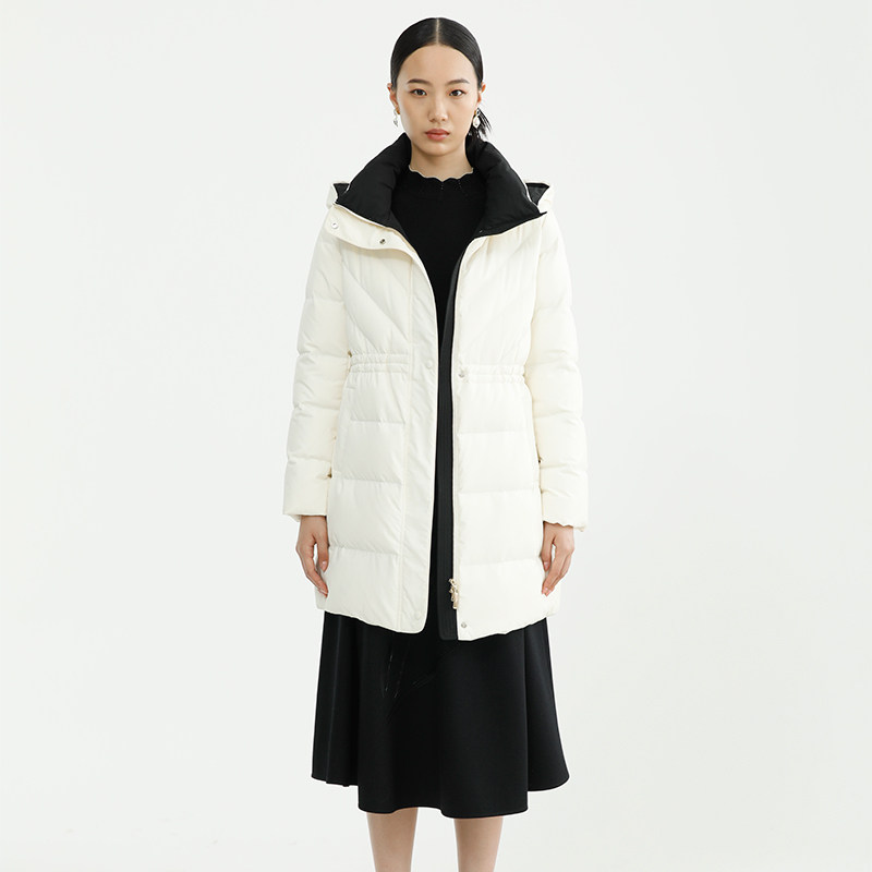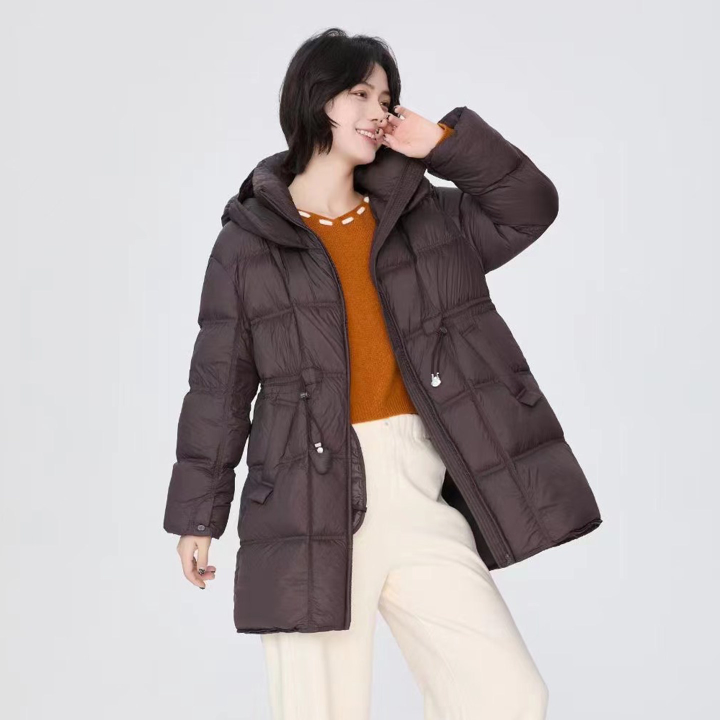 90白鸭绒中长款连帽羽绒服超软超柔超轻设计感羽绒衣时尚大气外套