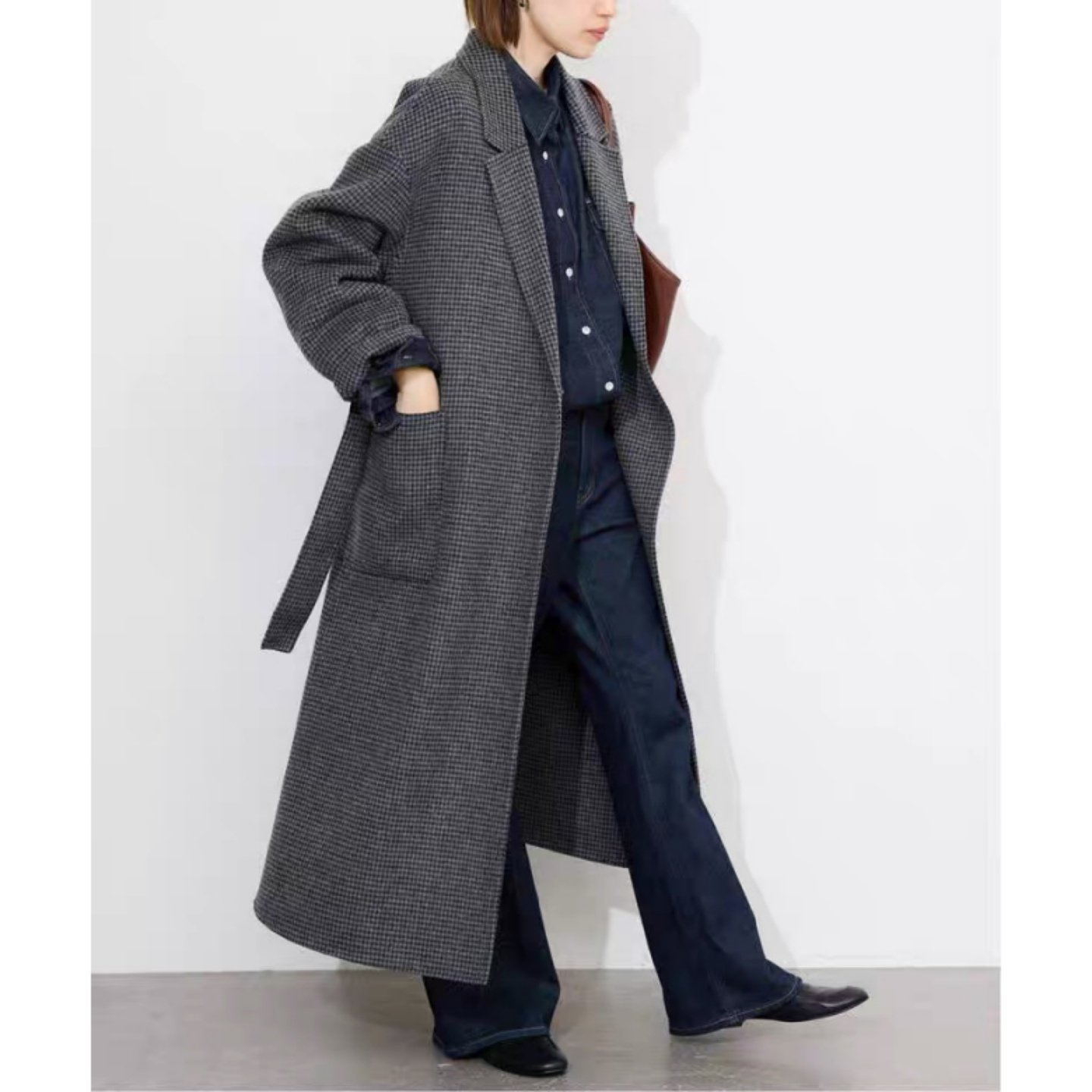 【奥莱】LULUALWAYS都市通勤千鸟格大衣女翻领大气外套