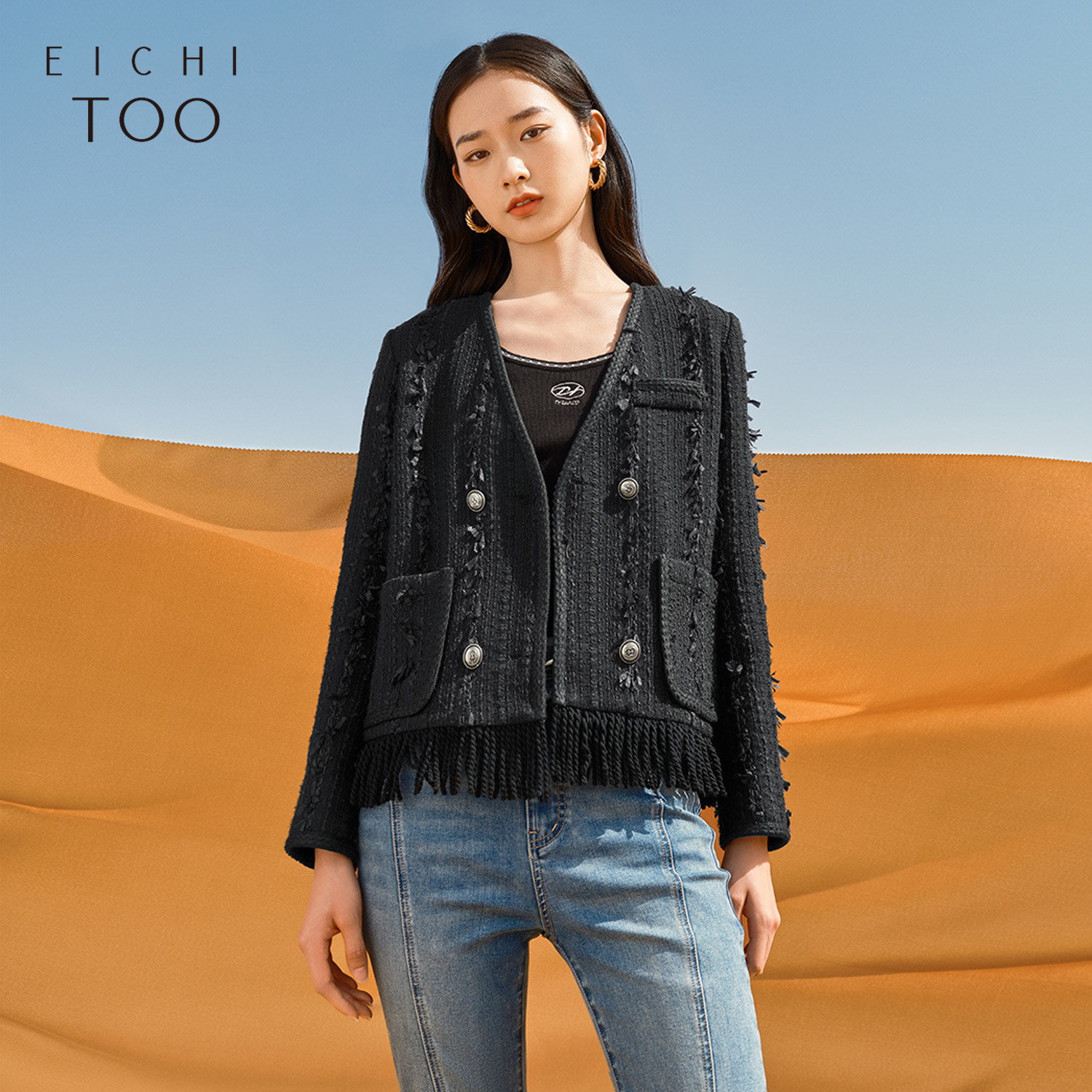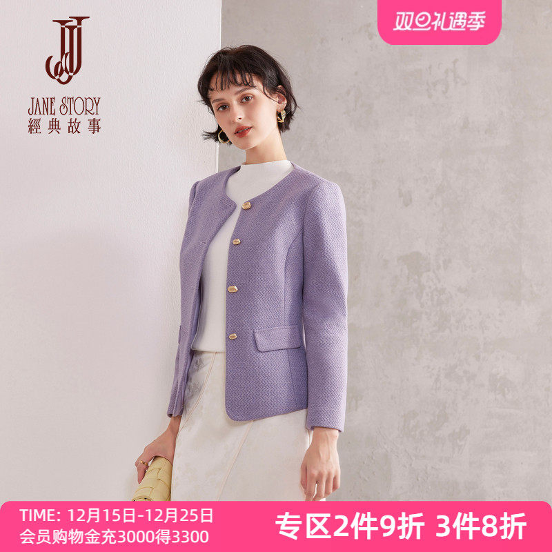 高端圆领小香风外套女2025秋冬新款别致纽扣紫色高级感大气外套