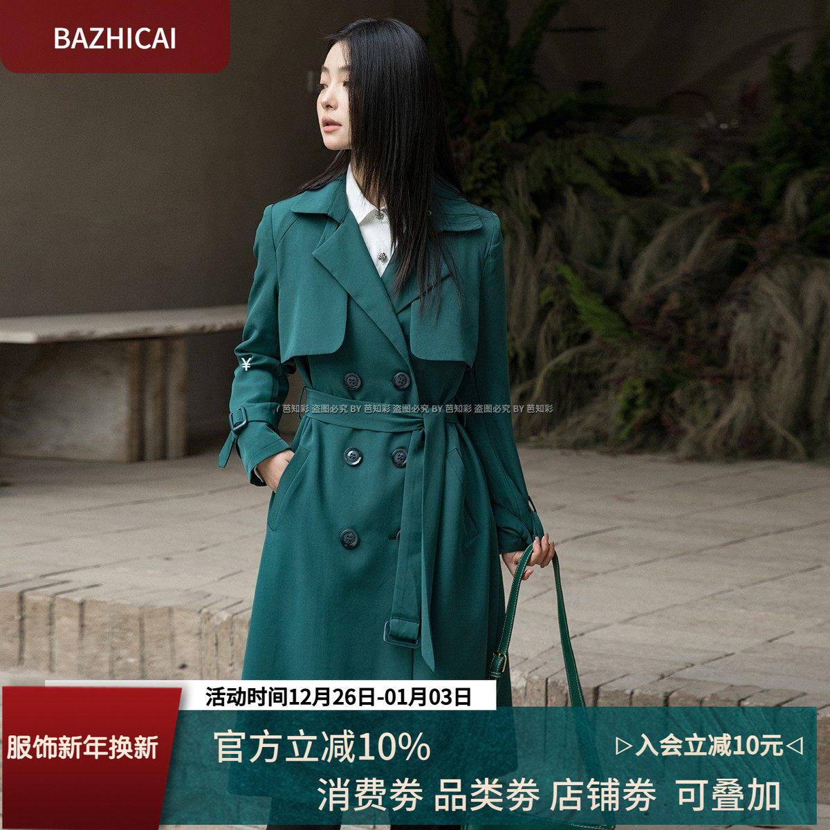 时尚通勤简约小个子赫本风大气外套秋新款垂顺双排扣绿色风衣505