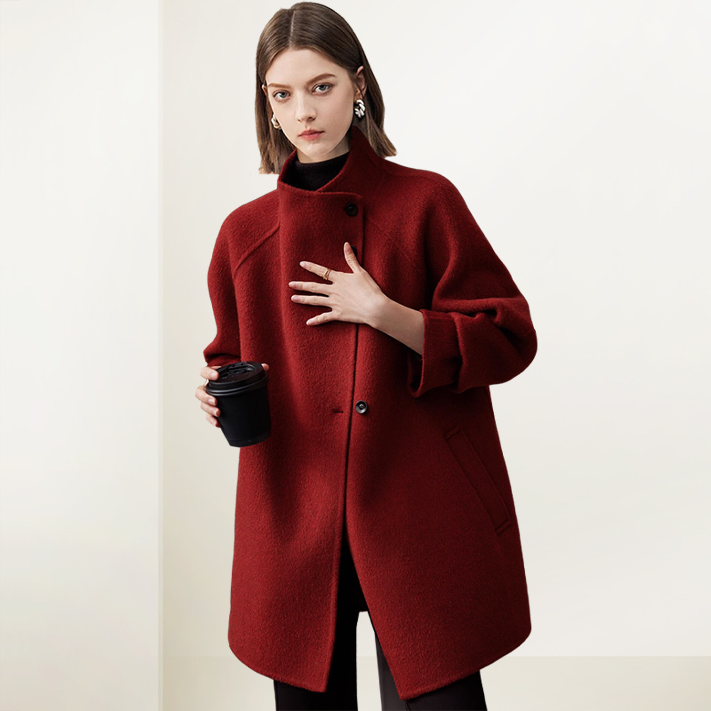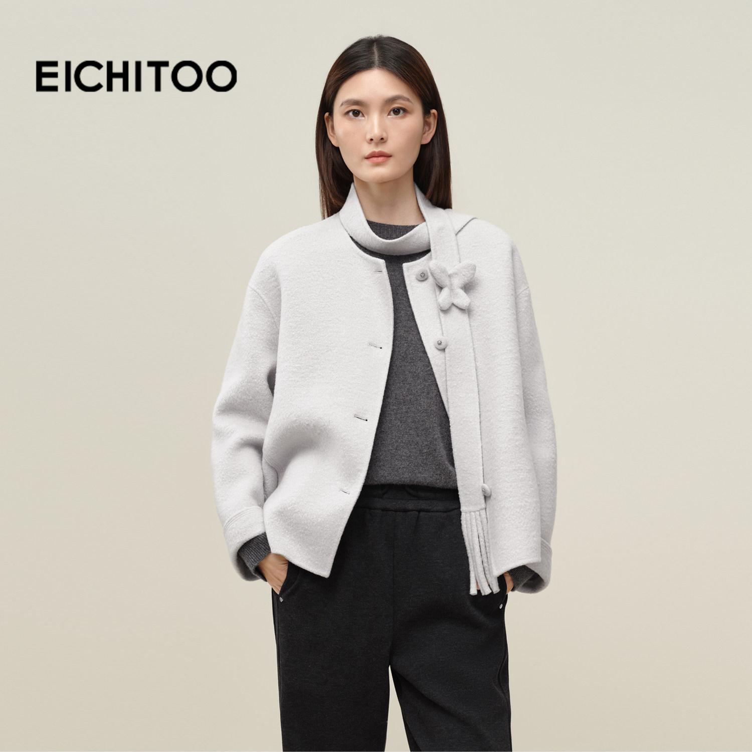 爱居兔桑蚕丝绵羊毛品质感双面呢大衣2025年冬季新款简约大气外套