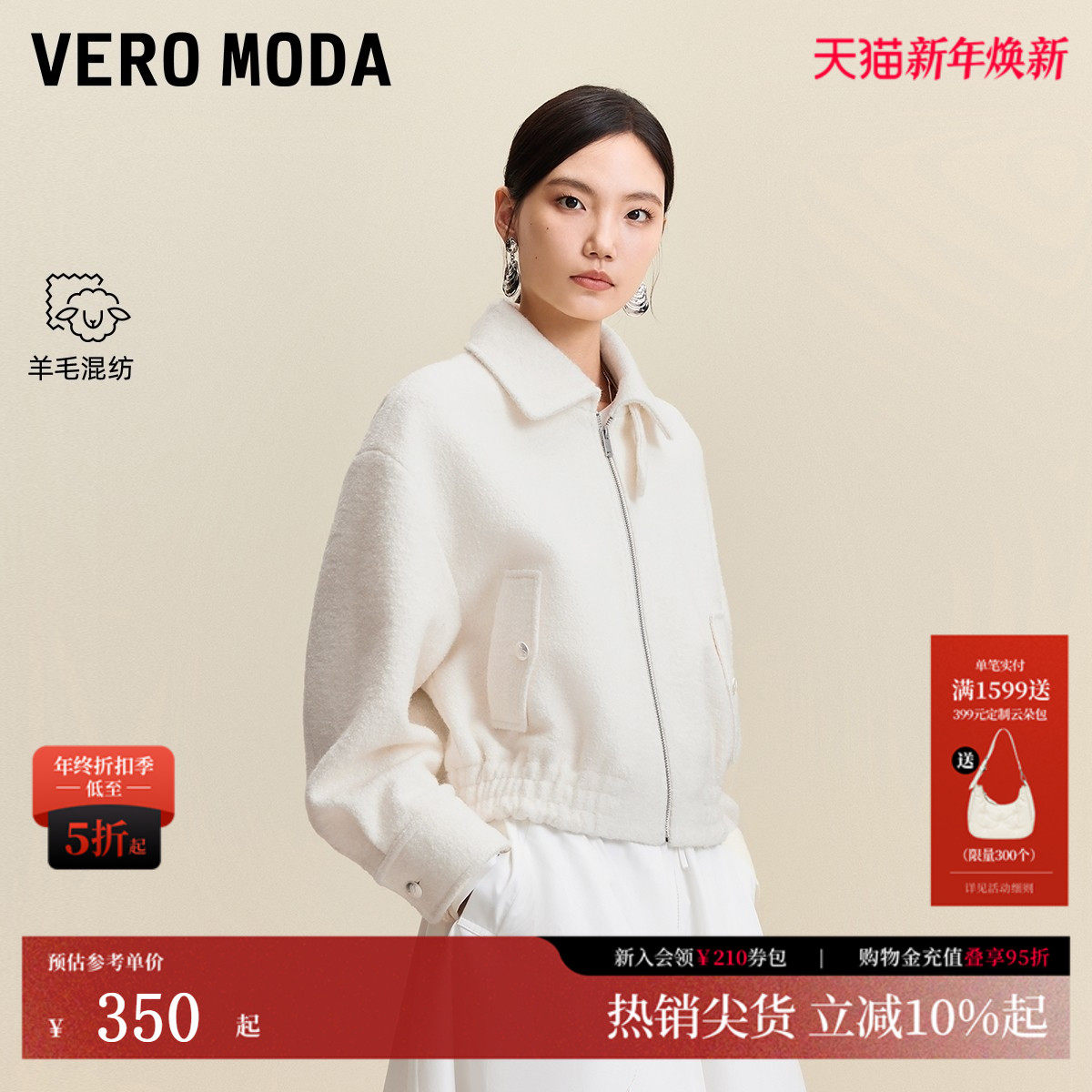 Vero Moda短外套2025秋冬新款含绵羊毛翻领领口扣袢上衣简约大气