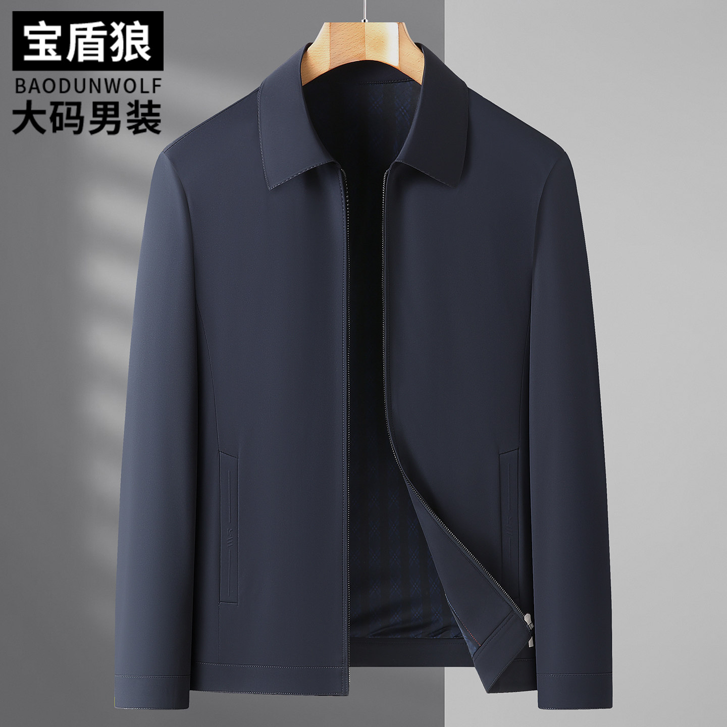 厅局风翻领夹克男大码简约大气外套秋季新款中年商务休闲行政茄克