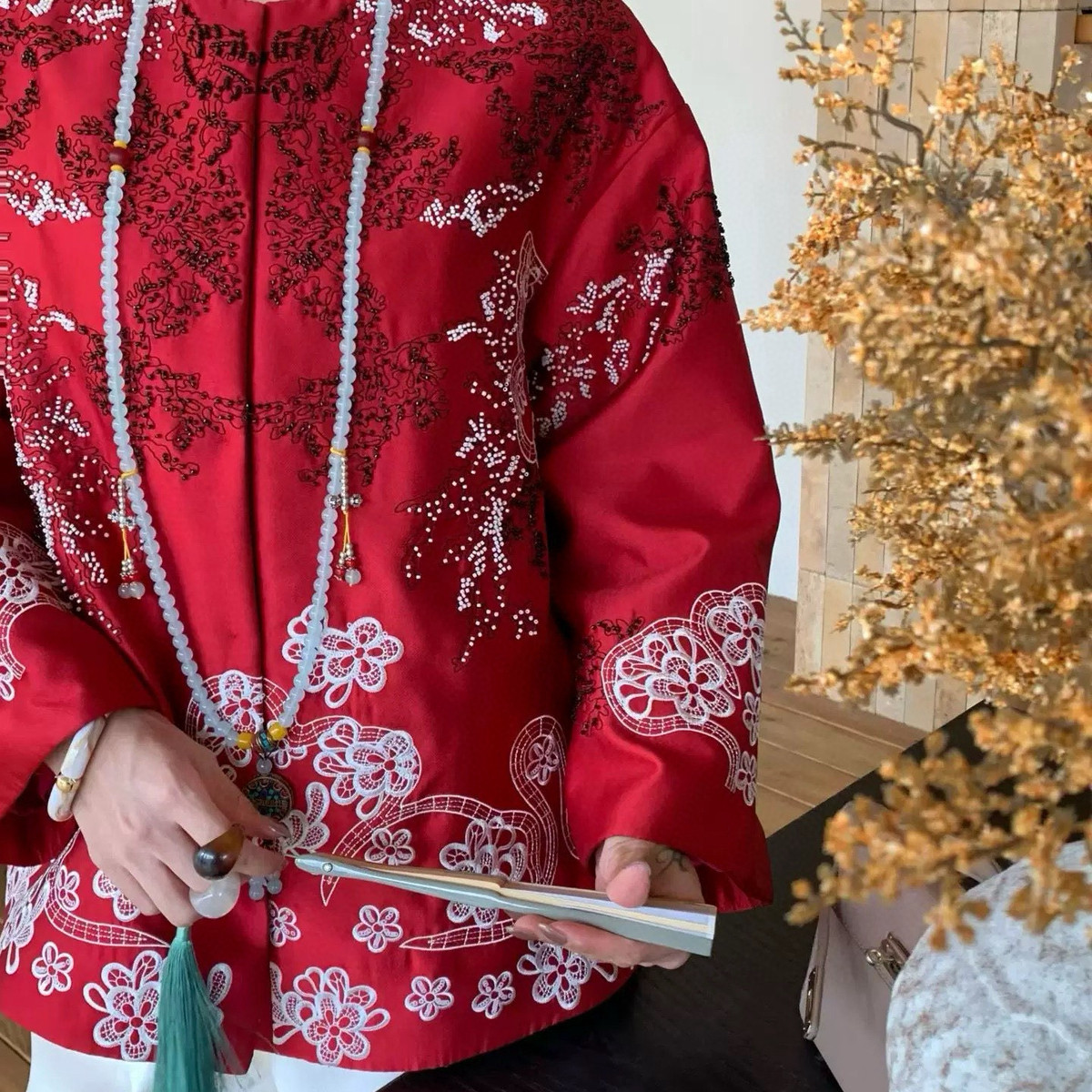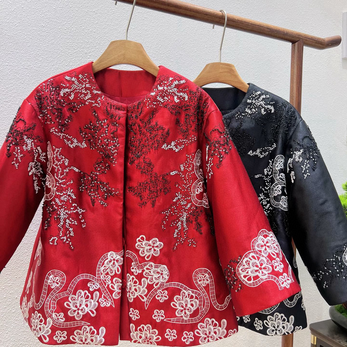 冬上新中式新年战袍大气外套重工钉珠保暖棉服外套(含65%羊毛)