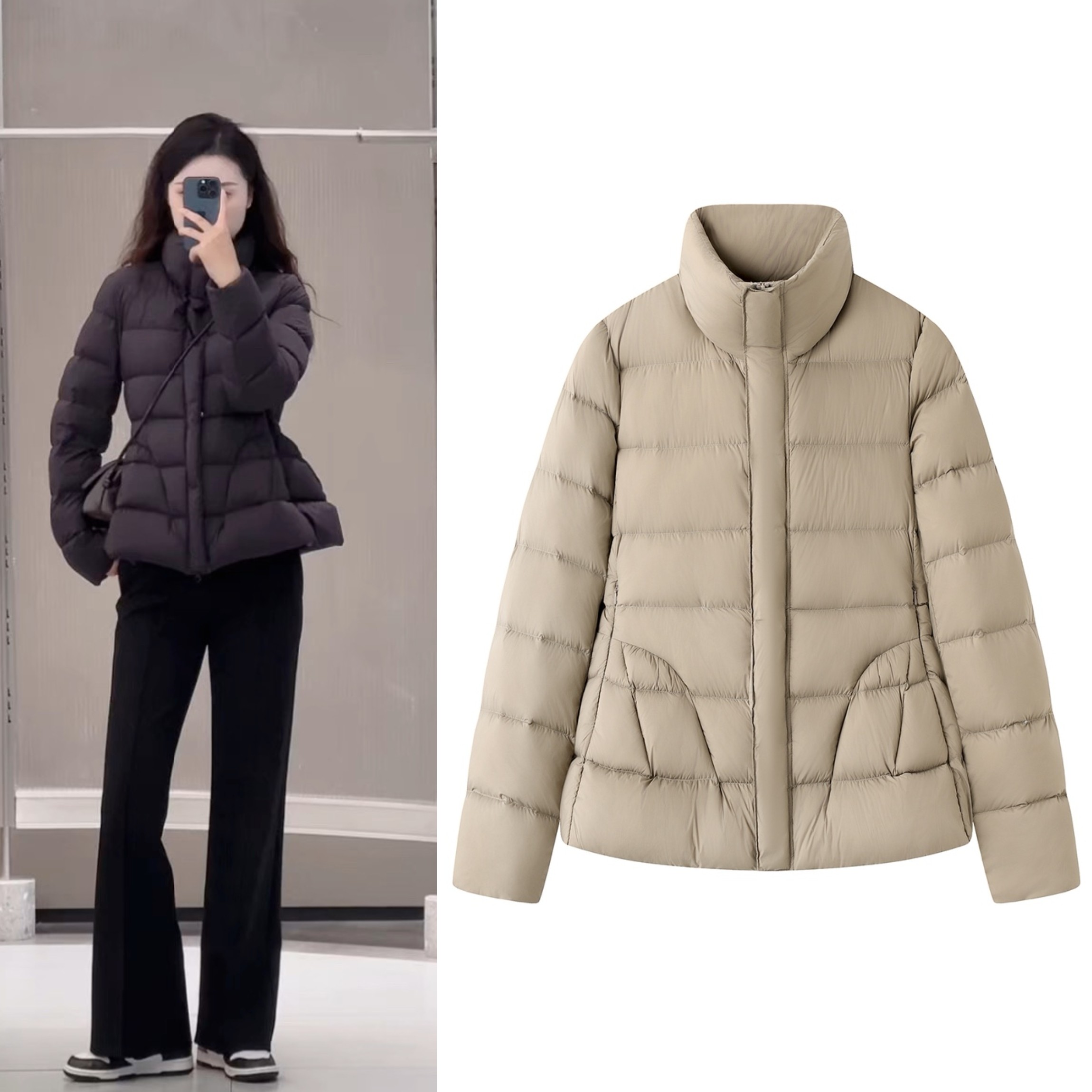 2025秋新品羽绒服立领收腰廓形显瘦保暖白鸭绒复古简约大气外套女