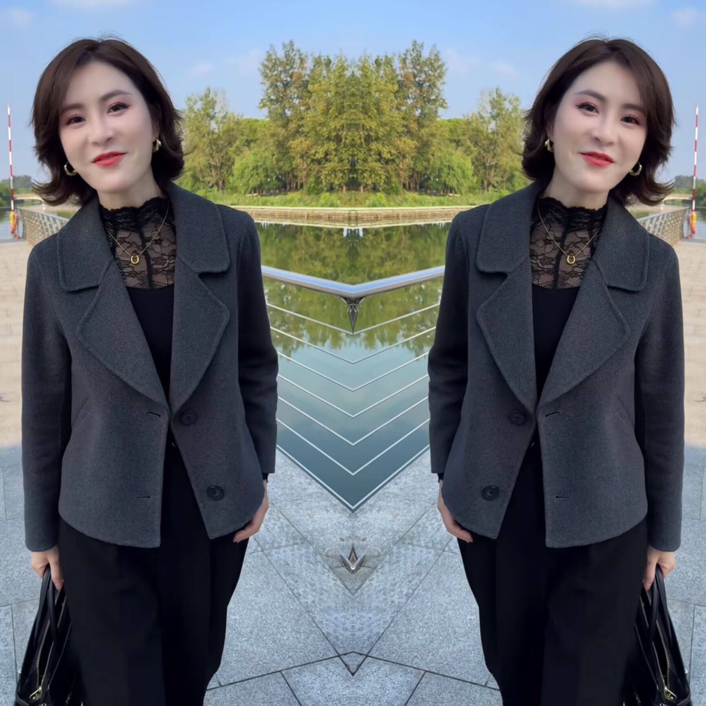 抖音网红气质时尚秋冬新款洋气女士西装领毛呢短款高端大气外套潮