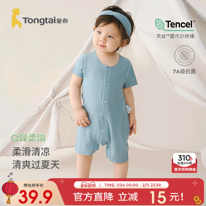 童泰婴儿连体衣夏季薄款莫代尔宝宝无痕短袖哈衣儿童休闲外出爬服