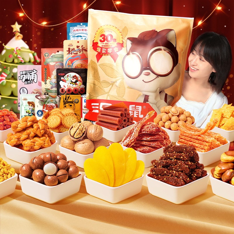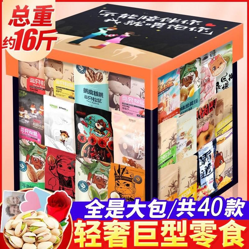 三只松鼠_巨型零食大礼包送女友礼物30袋解馋小吃零食生日礼物