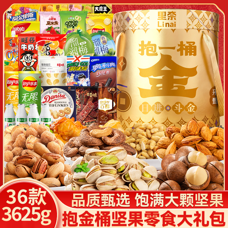里奈零食抱一桶金坚果零食大礼包整箱休闲零食送礼送女友生日礼盒
