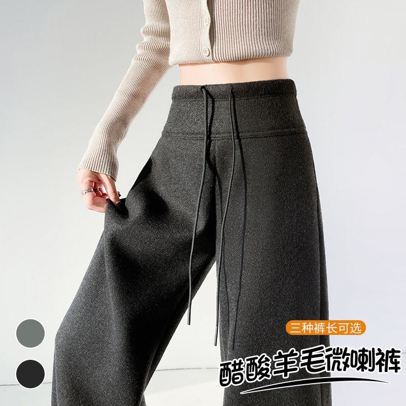 2025秋冬新款百搭微休闲羊毛直筒阔腿拖地裤女喇羊绒裤加绒微喇裤