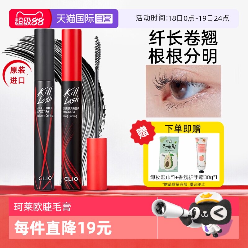 韩国clio珂莱欧睫毛膏01易梦玲同款浓密纤长卷翘女防晕染持妆新手