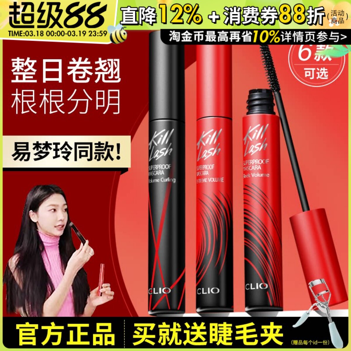 韩国Clio珂莱欧新品Kill Lashfine睫毛膏纤长浓密持久卷翘太阳花