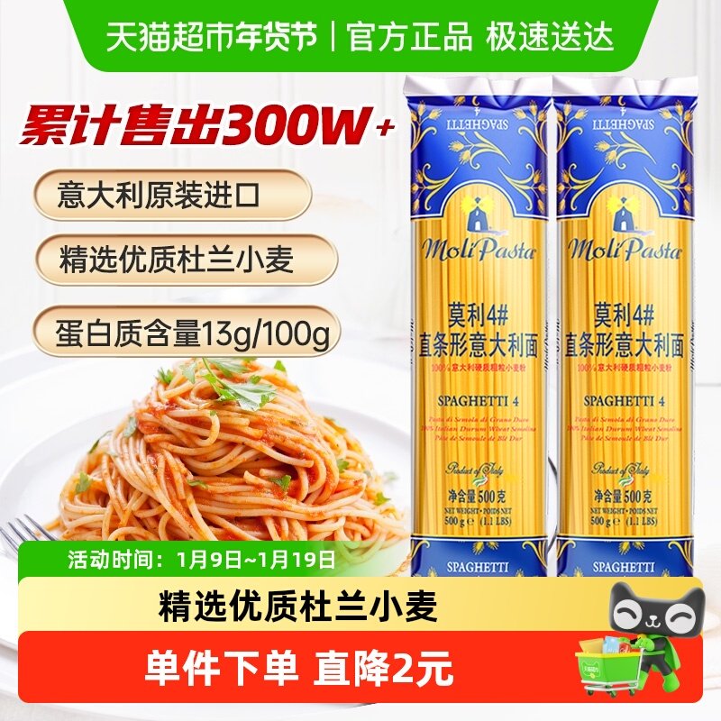 【进口】莫利直条形意大利面500gx2袋意面通心粉方便面条西餐挂面