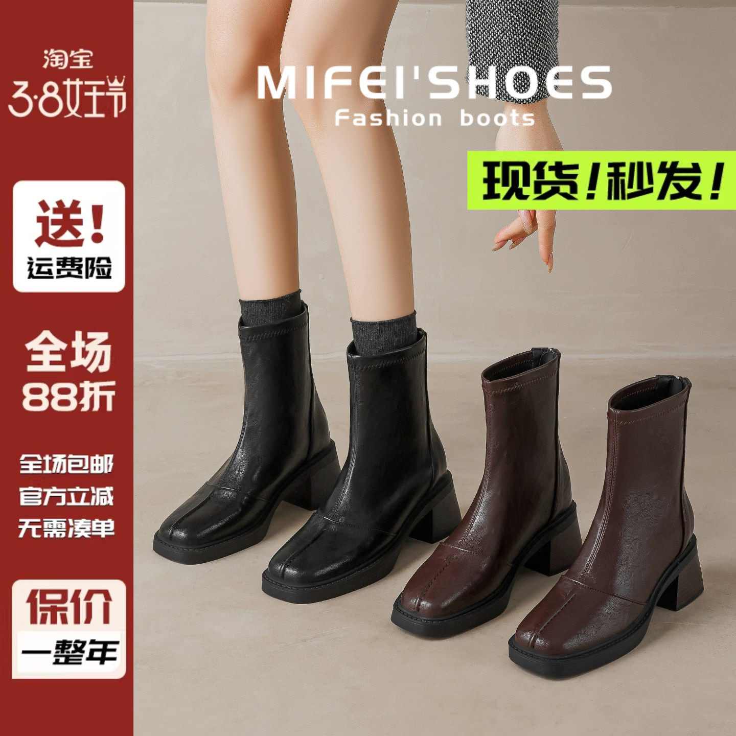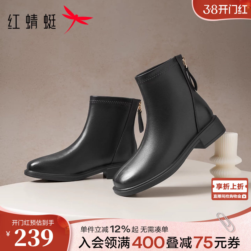 - 粗跟短靴女冬