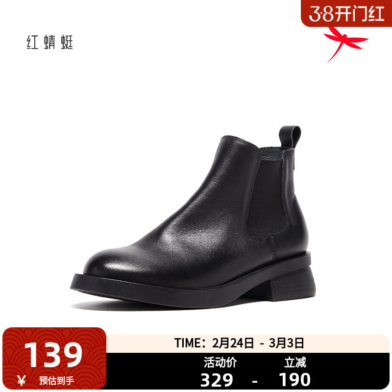 红蜻蜓切尔西靴女秋冬英伦复古女靴百搭短靴女舒适通勤烟筒靴子女