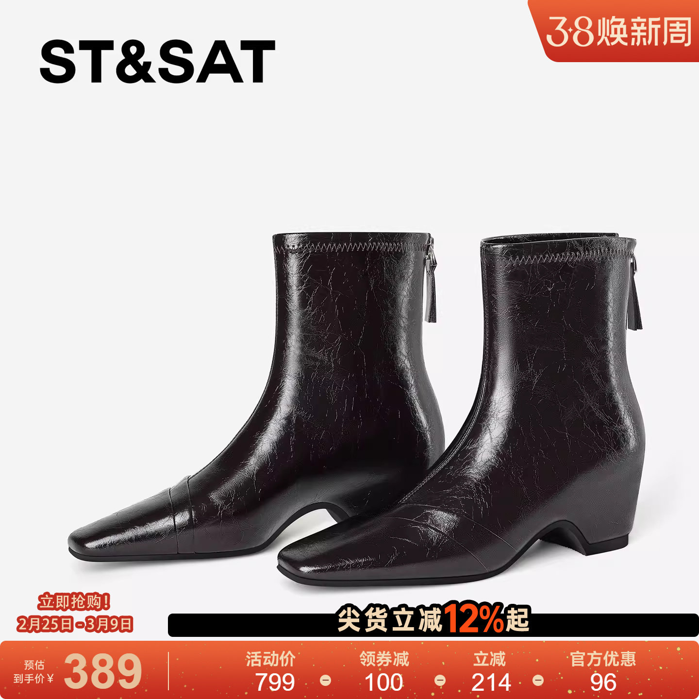 星期六秋冬气质粗跟短靴女靴2025新款英伦风西部靴百搭切尔西靴子