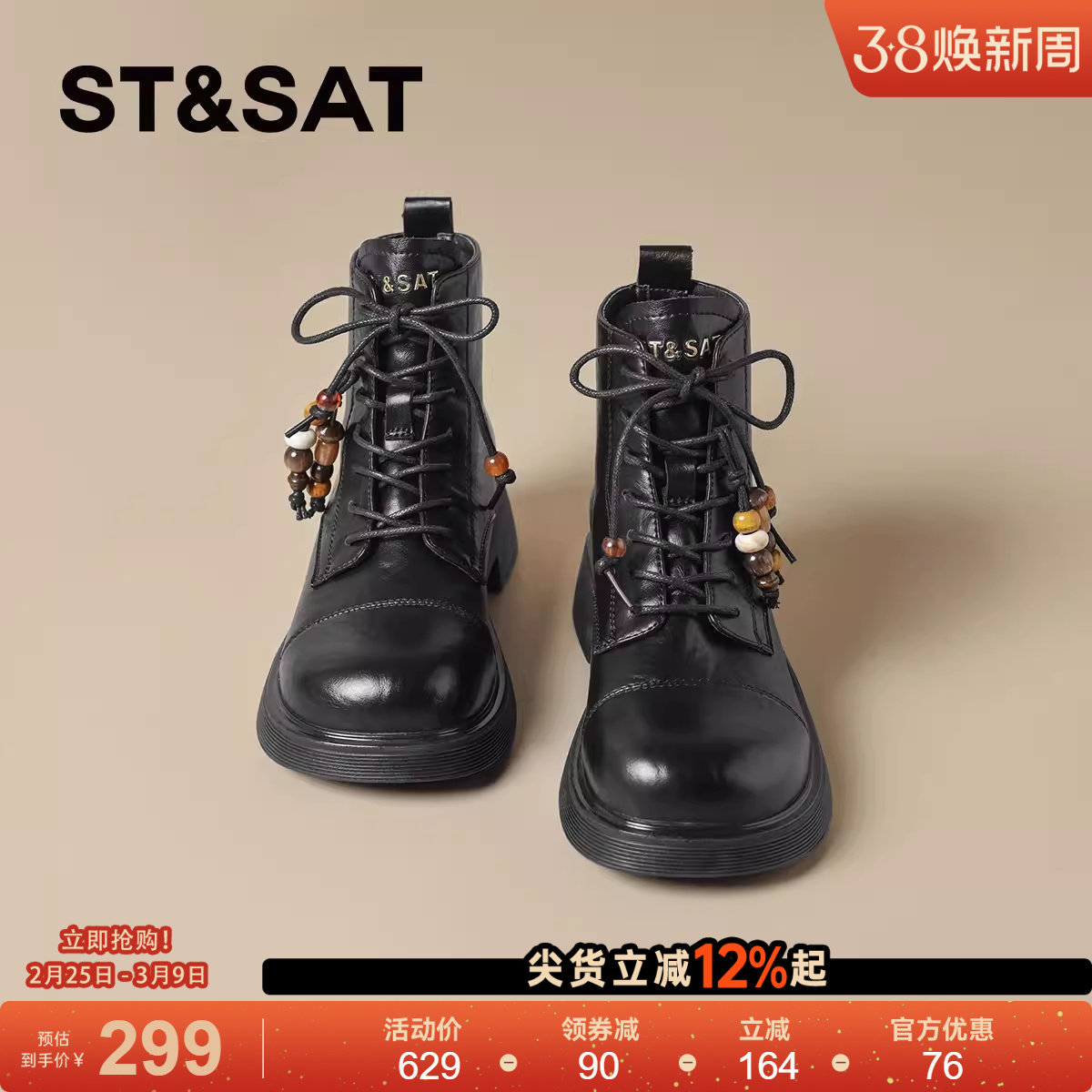 星期六英伦风牛皮厚底马丁靴女靴2025秋冬新款真皮靴子机车靴短靴