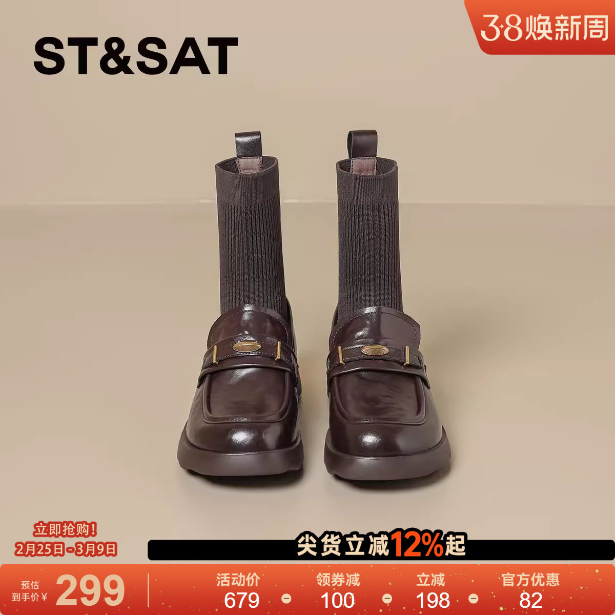 星期六复古乐福鞋短靴女靴2025新款秋冬袜靴英伦风厚底黑色小皮鞋