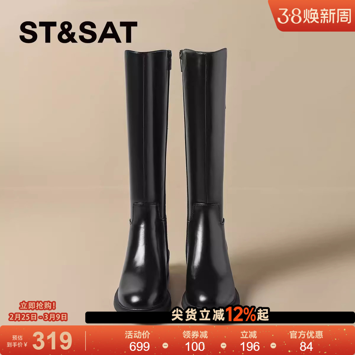 星期六真皮英伦风长筒靴骑士靴女靴2025秋冬新款粗跟长靴高筒靴子