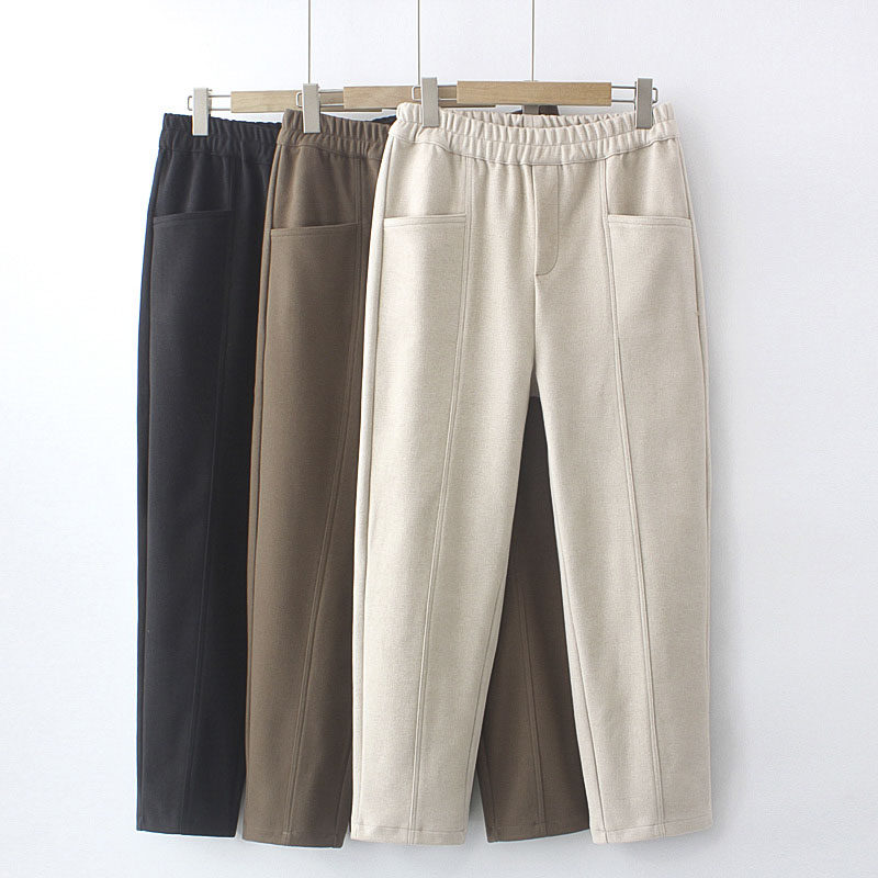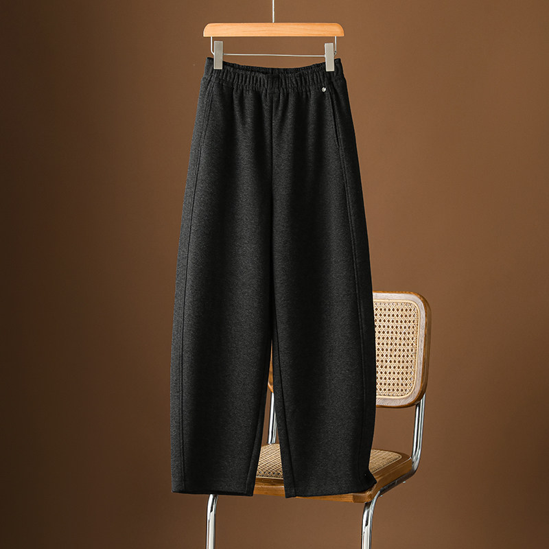 2025新款韩系加厚松紧腰毛呢休闲裤女秋冬九分哈伦裤巨好看的裤子