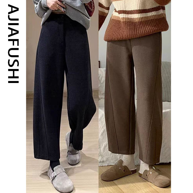 2025年新款羊毛呢镰刀裤小直筒秋冬九分哈伦裤女宽松显瘦休闲裤子