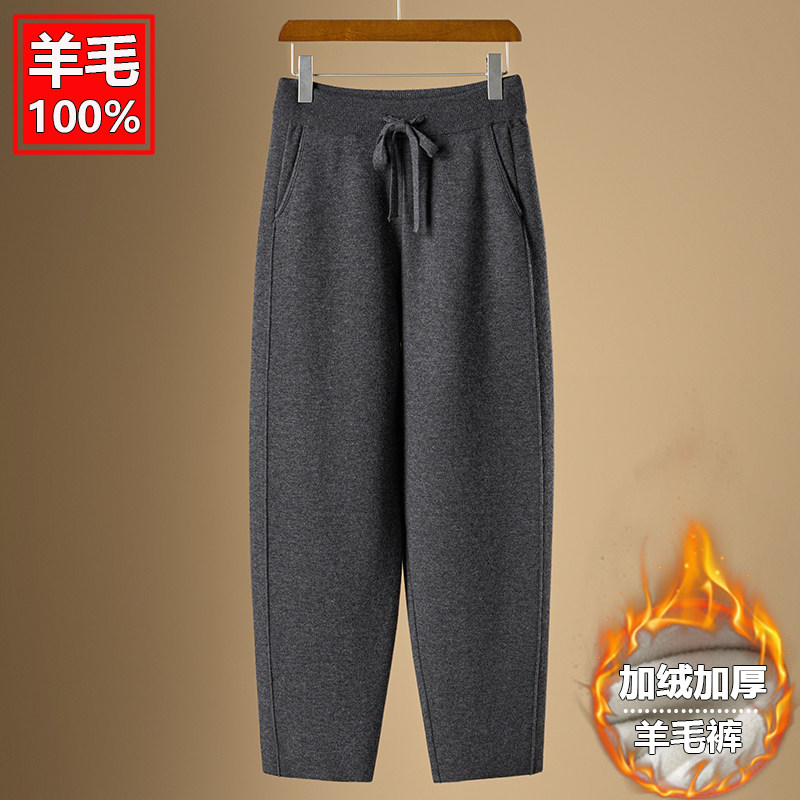 冬季新款100%纯羊毛呢萝卜哈伦裤女高腰加厚外穿直筒休闲九分裤子